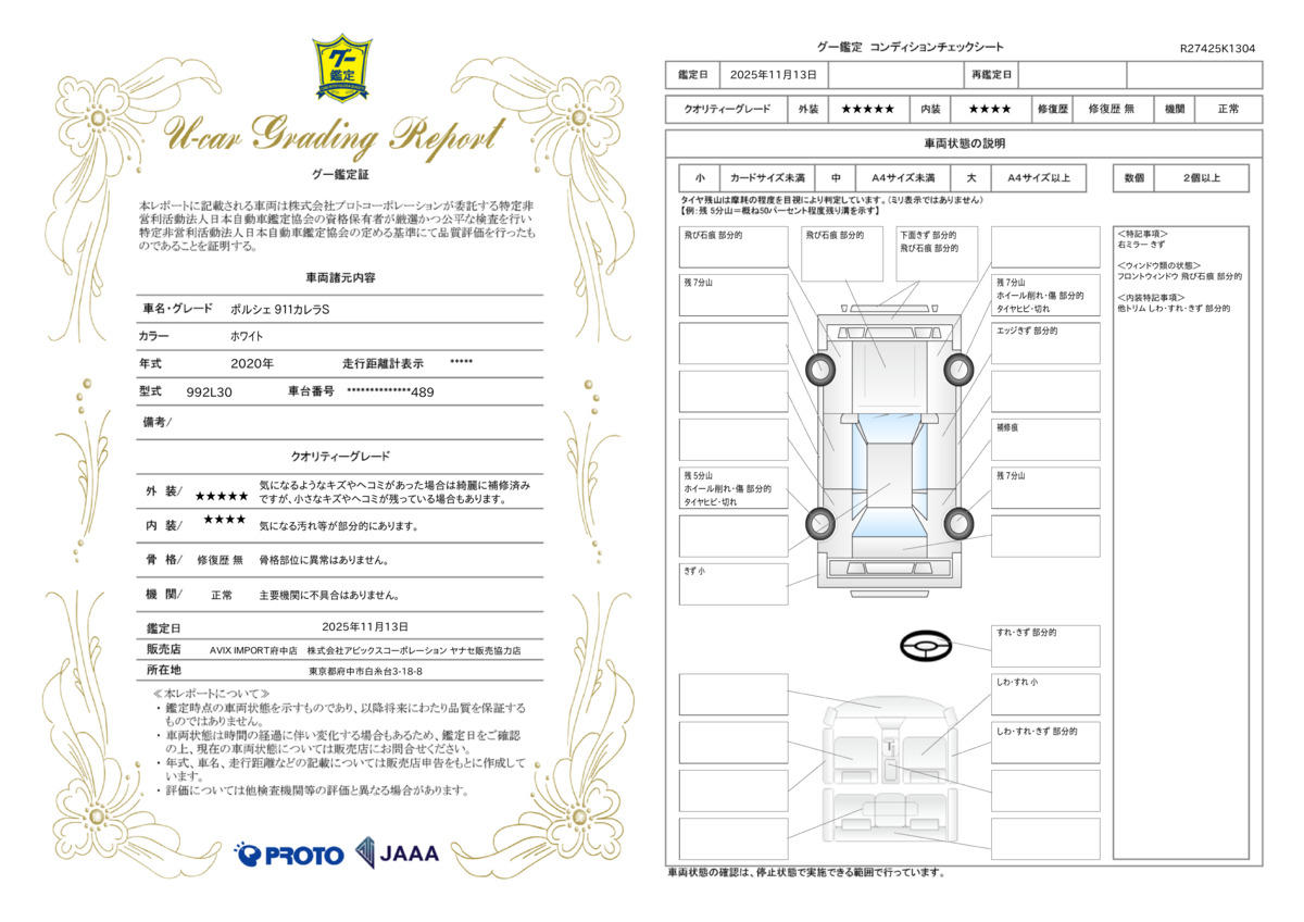 | 車両状態評価書 | ※クリックすると開きます![]() |