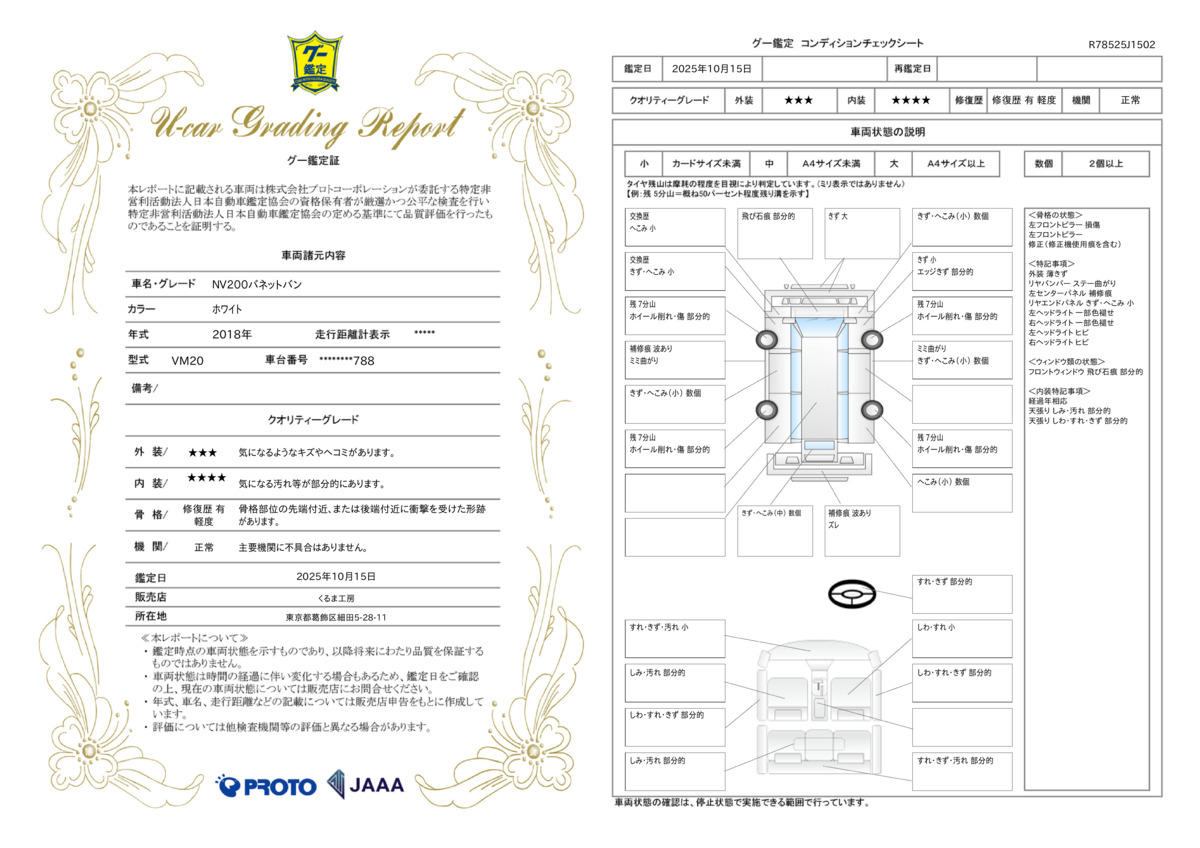 車両状態評価書 | ※クリックすると開きます![]() |