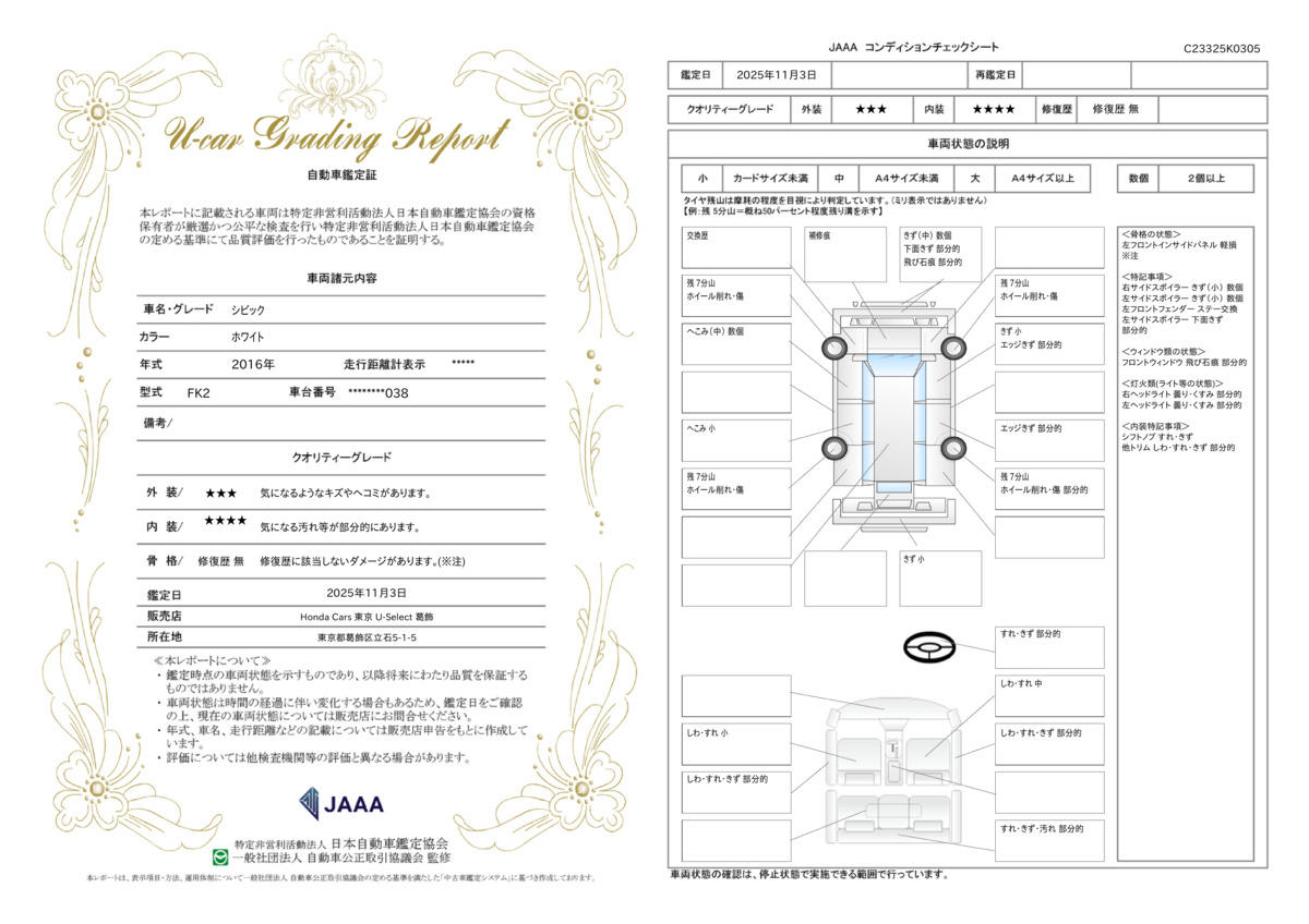 | 車両状態評価書 | ※クリックすると開きます![]() |