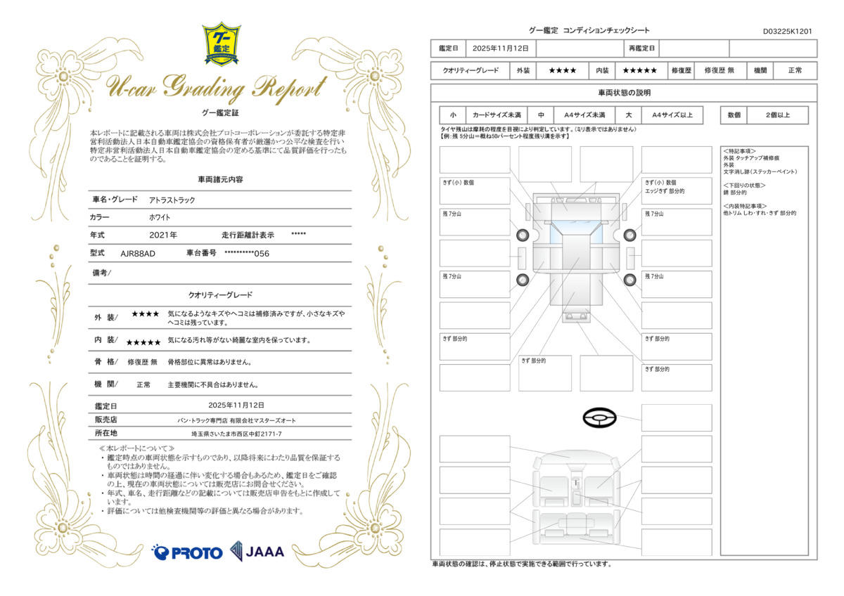 | 車両状態評価書 | ※クリックすると開きます![]() |