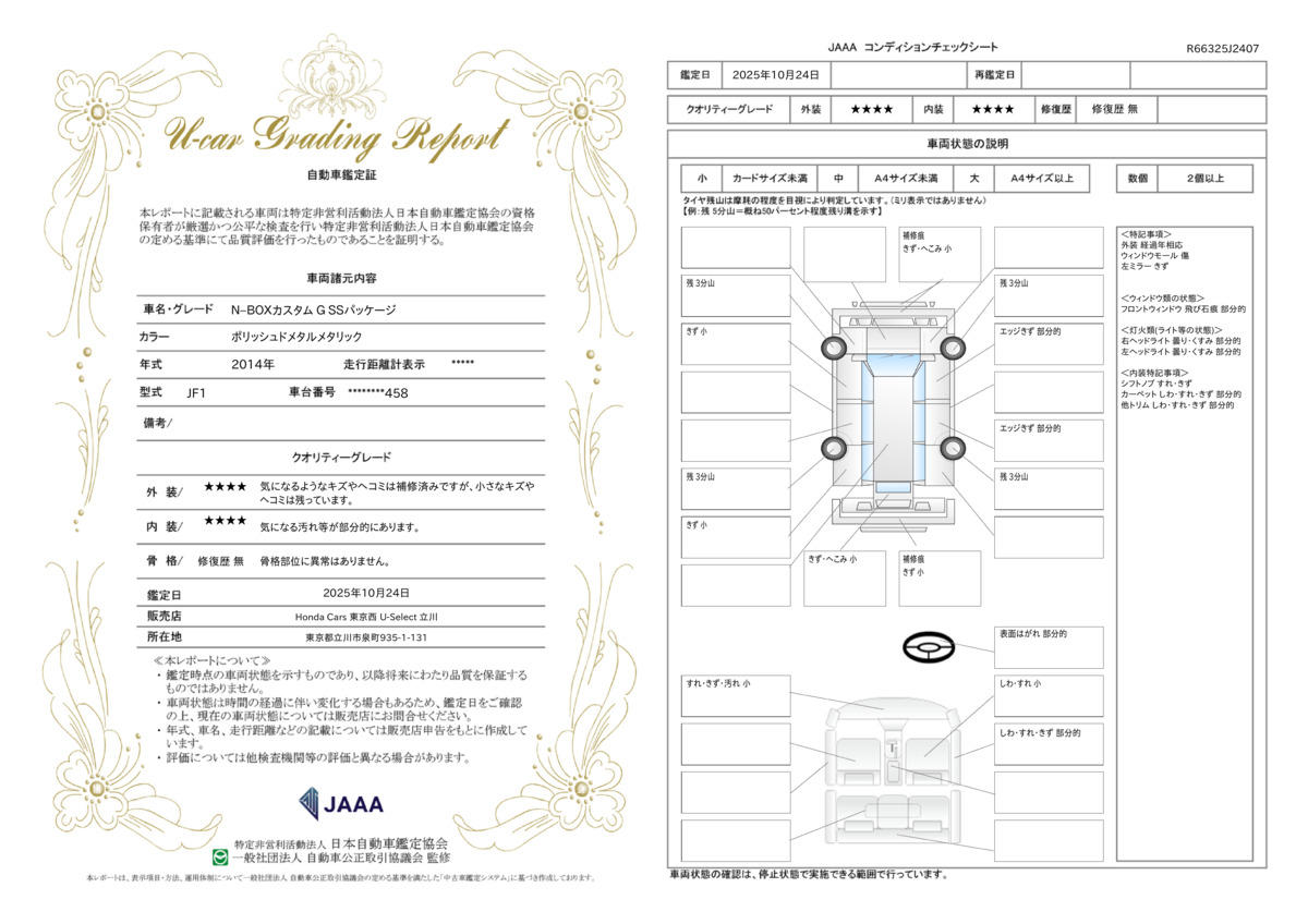 車両保証(N-BOXカスタム G SSパッケージ:Honda Cars 東京西 U-Select立川)