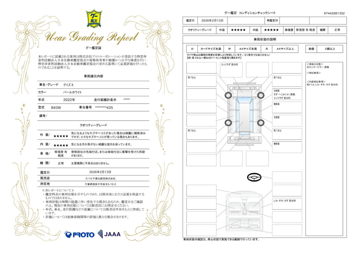 | 車両状態評価書 | ※クリックすると開きます![]() |