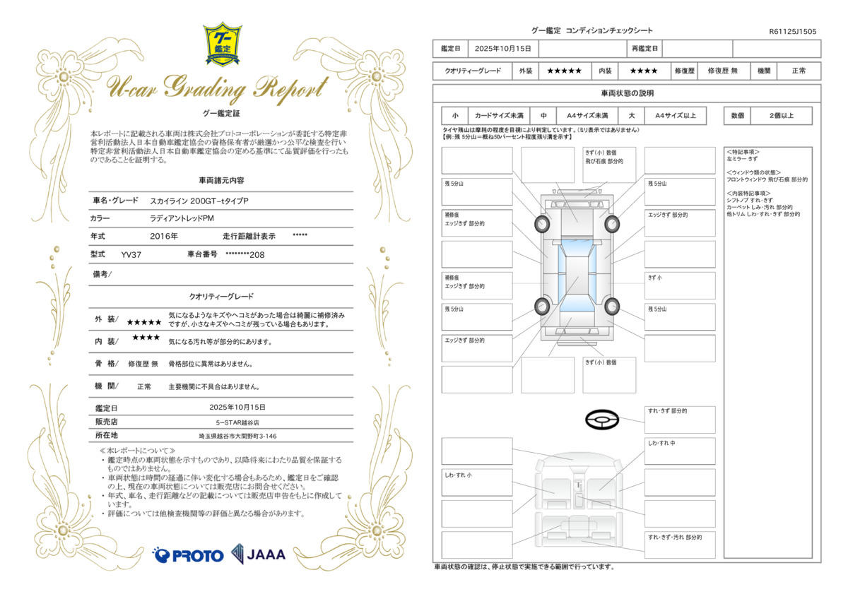 車両状態評価書 | ※クリックすると開きます![]() |