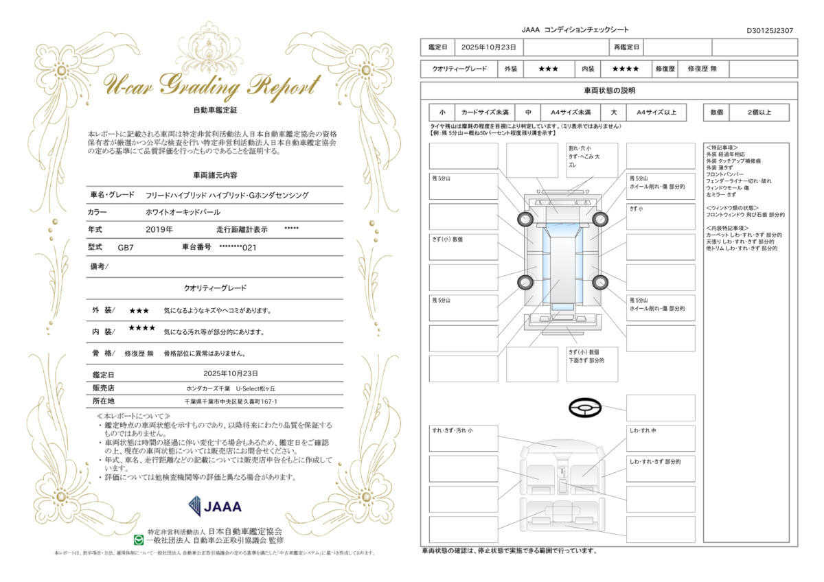 | 車両状態評価書 | ※クリックすると開きます![]() |