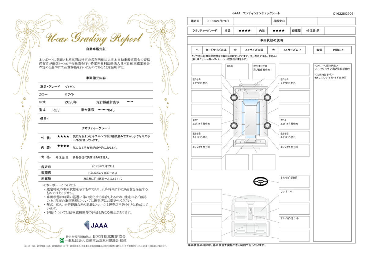 | 車両状態評価書 | ※クリックすると開きます![]() |