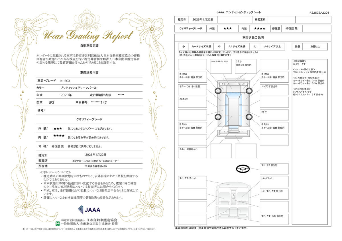 | 車両状態評価書 | ※クリックすると開きます![]() |