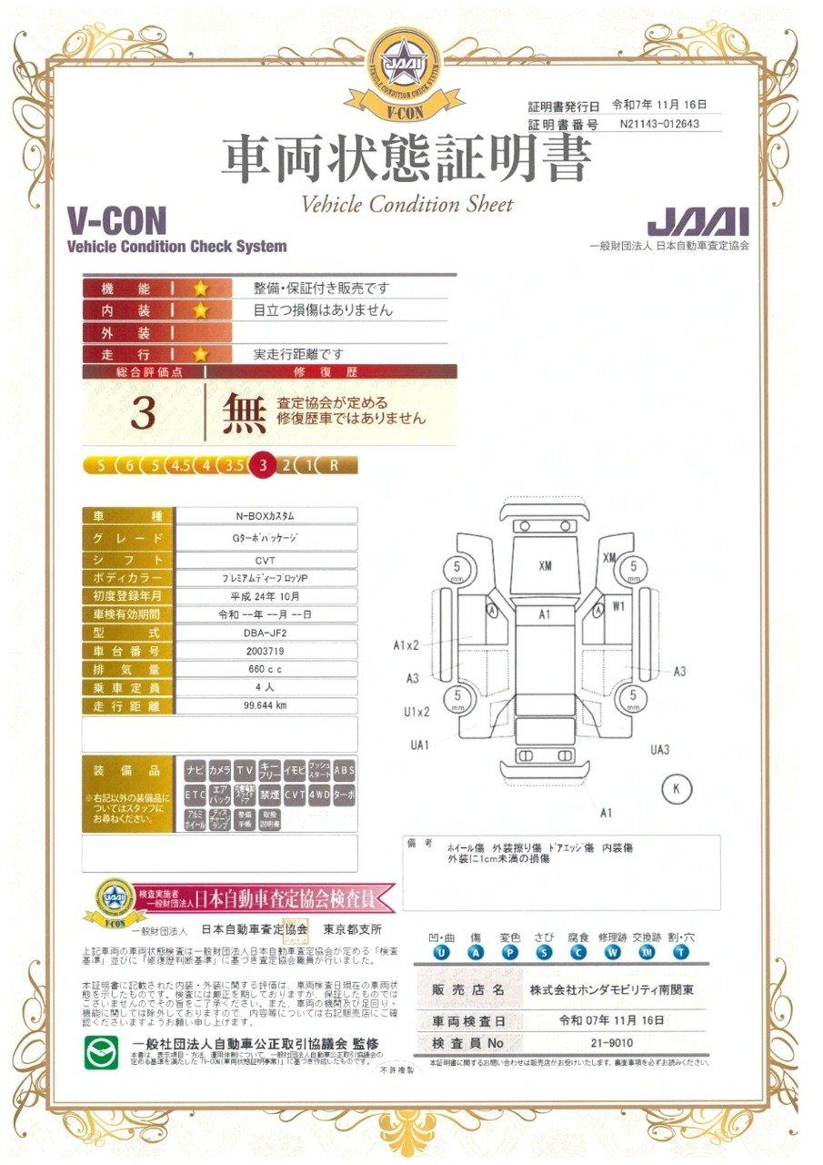 車両状態(N-BOXカスタム G・ターボパッケージ)