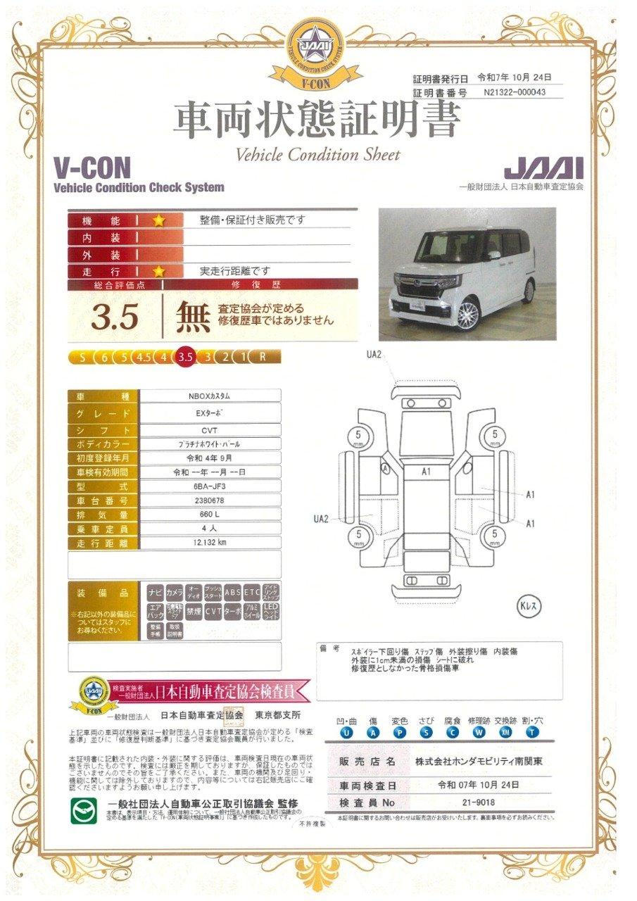車両保証(N-BOXカスタム EXターボ:ホンダカーズ東京中央 花小金井店)