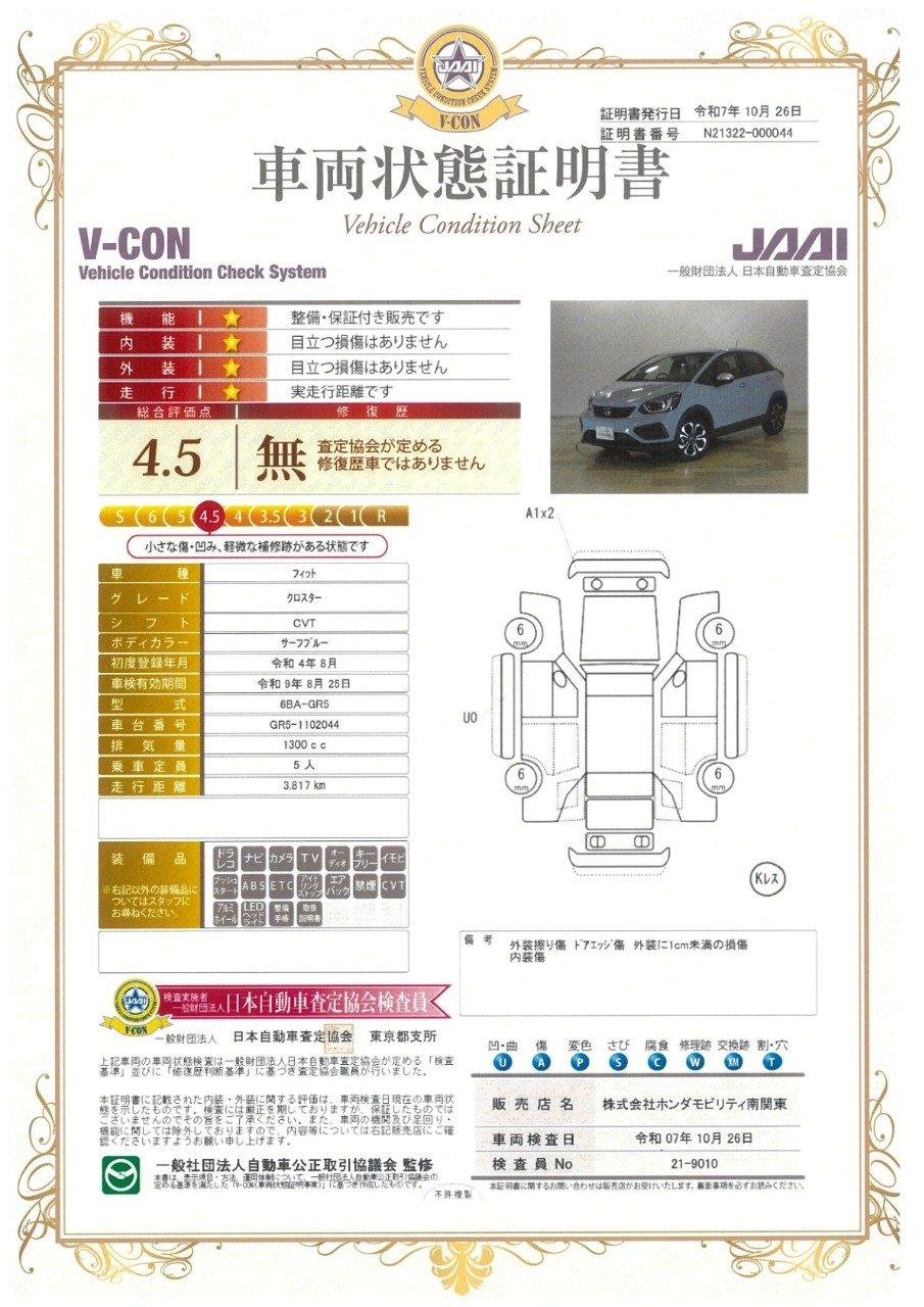 車両保証(フィット クロスター:ホンダカーズ東京中央 花小金井店)