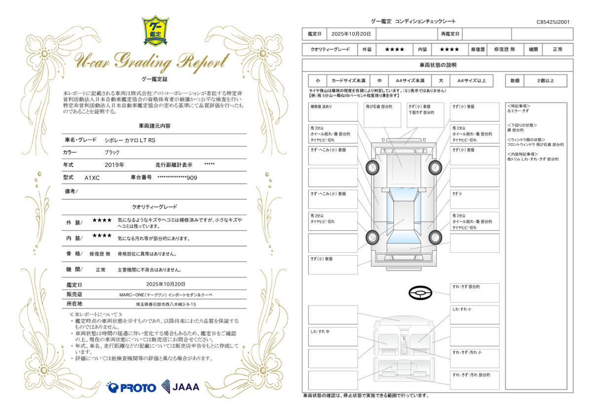 | 車両状態評価書 | ※クリックすると開きます![]() |