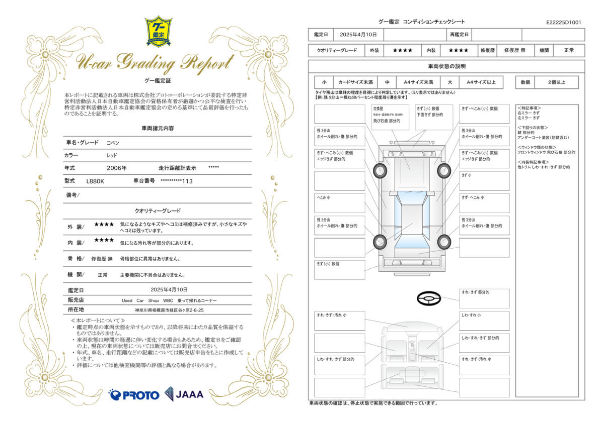 | 車両状態評価書 | ※クリックすると開きます![]() |