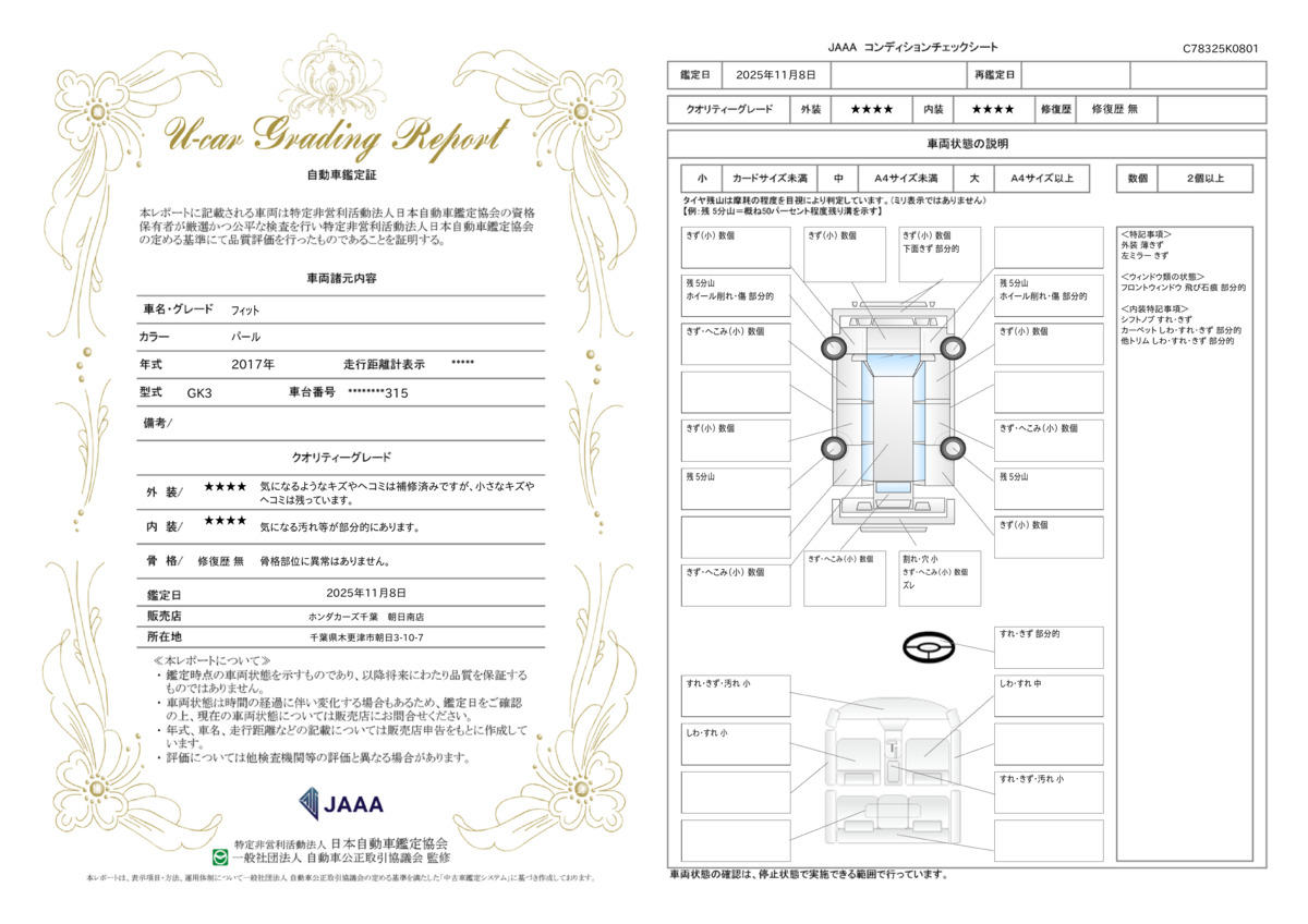 | 車両状態評価書 | ※クリックすると開きます![]() |