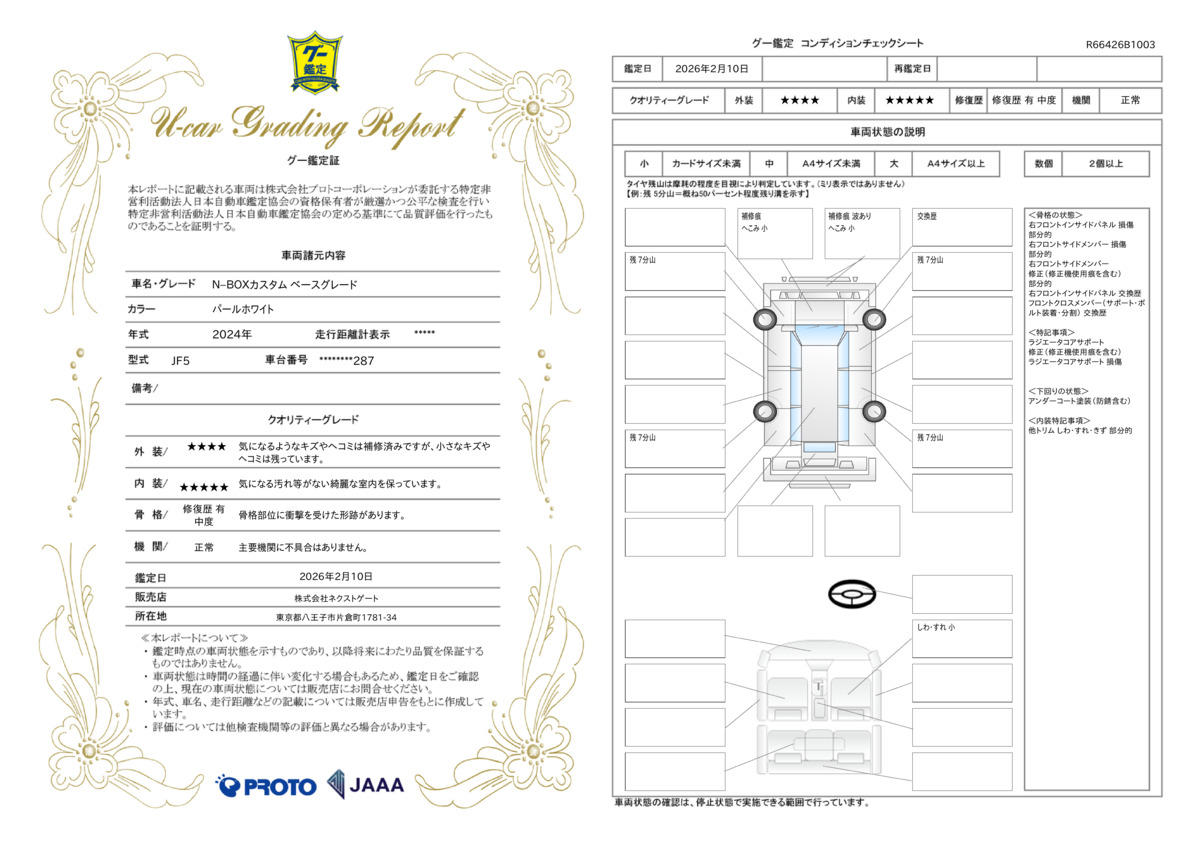 | 車両状態評価書 | ※クリックすると開きます![]() |