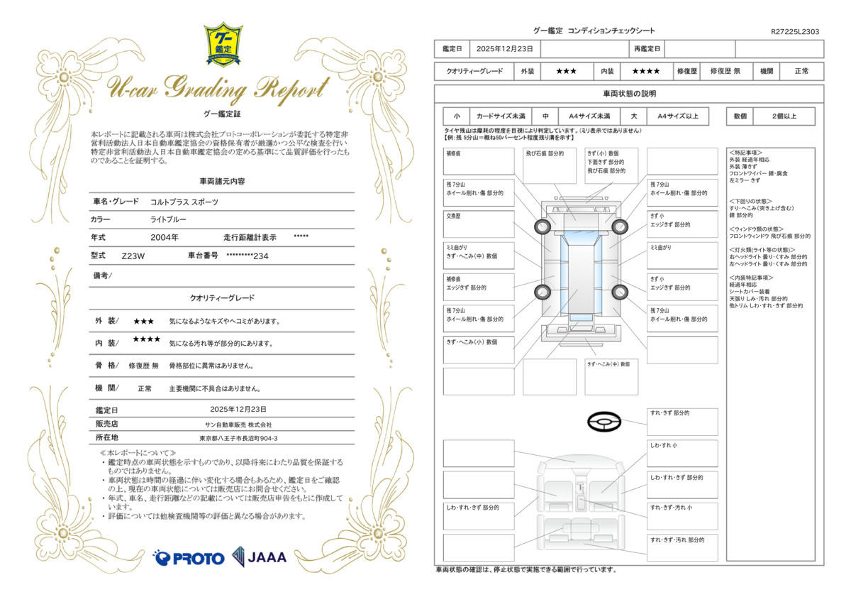 | 車両状態評価書 | ※クリックすると開きます![]() |