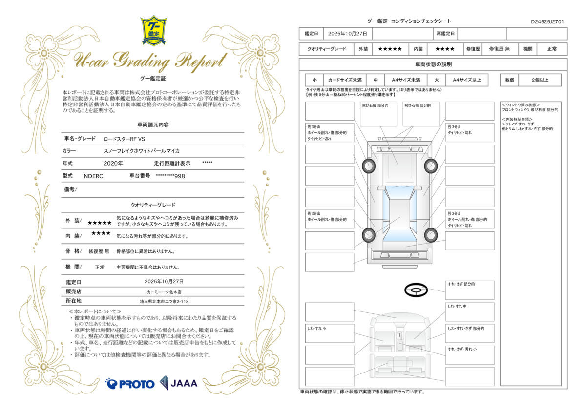 | 車両状態評価書 | ※クリックすると開きます![]() |