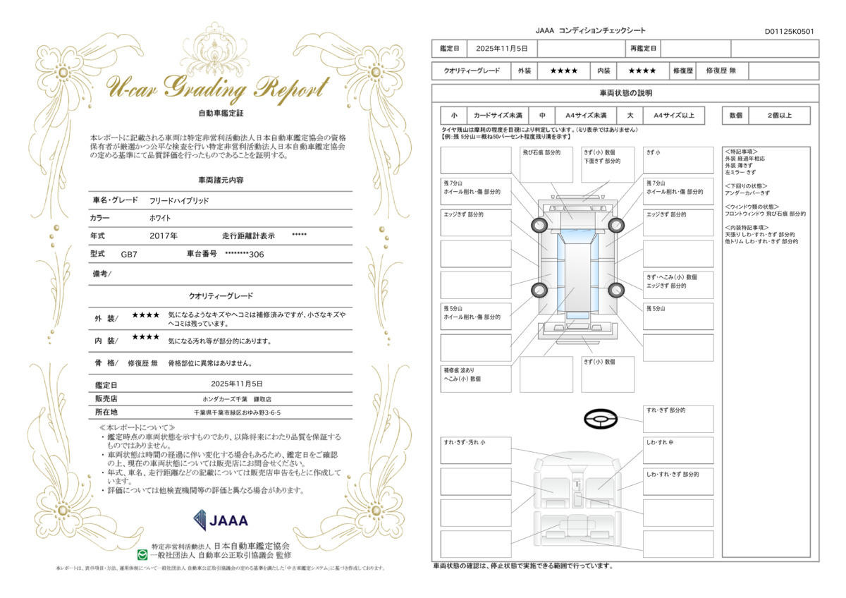 | 車両状態評価書 | ※クリックすると開きます![]() |