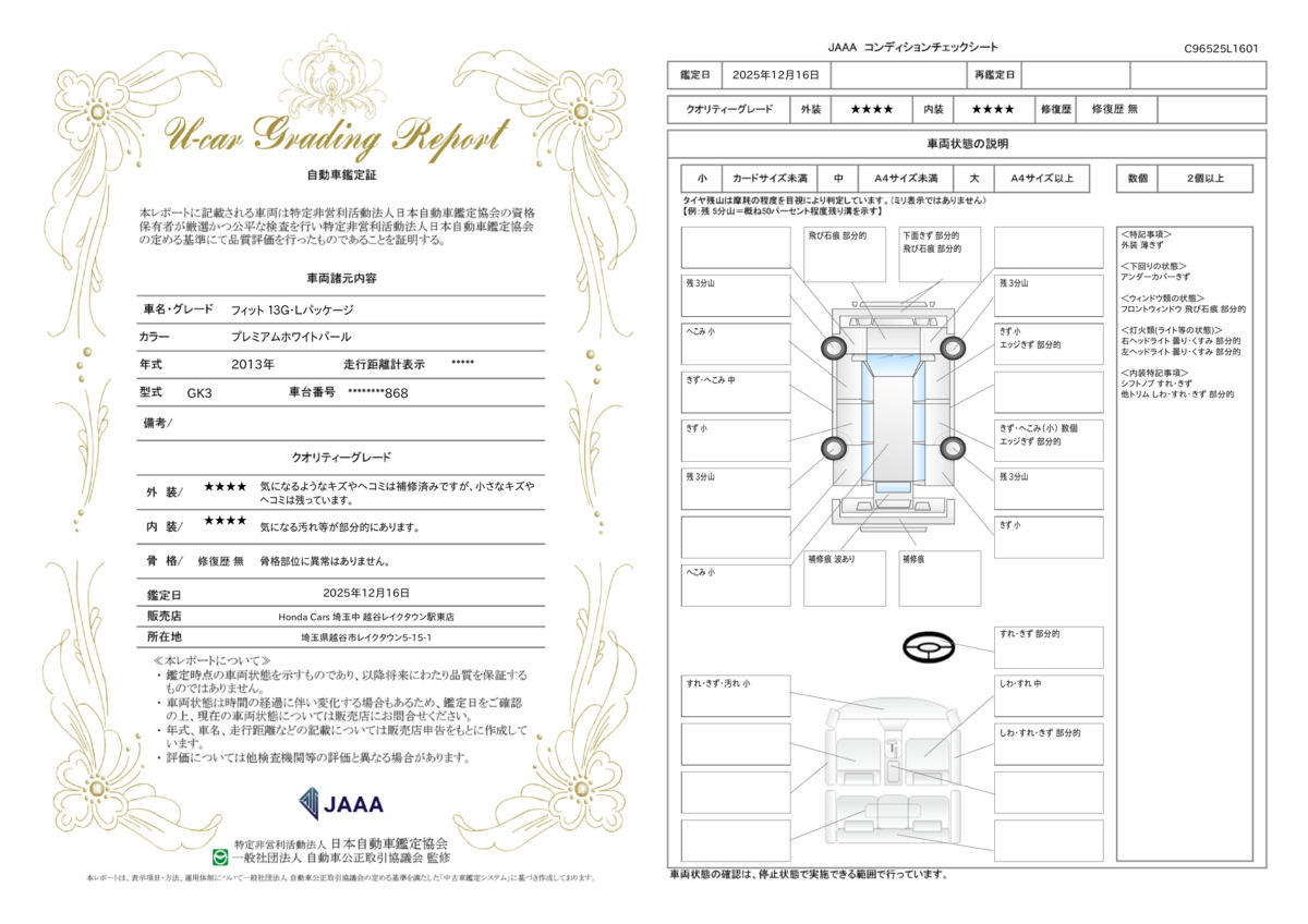 | 車両状態評価書 | ※クリックすると開きます![]() |