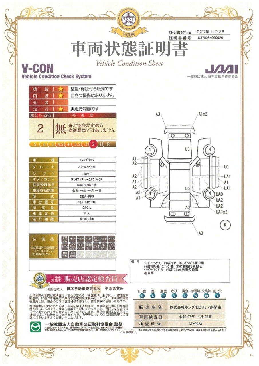 | 車両状態評価書 | ※クリックすると開きます![]() |