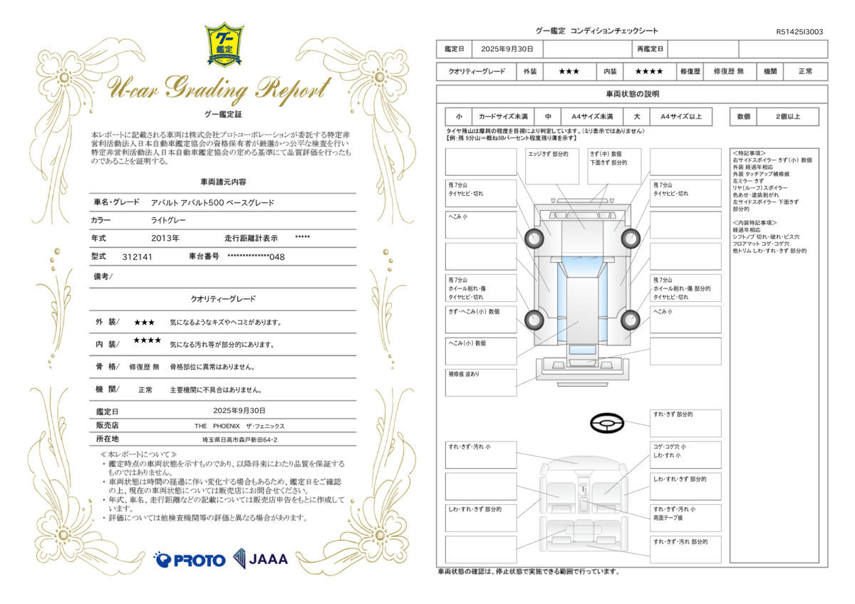 車両保証(アバルト500 ベースグレード:THE PHOENIX ザ・フェニックス)