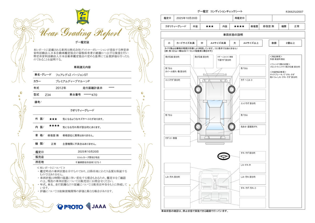 | 車両状態評価書 | ※クリックすると開きます![]() |
