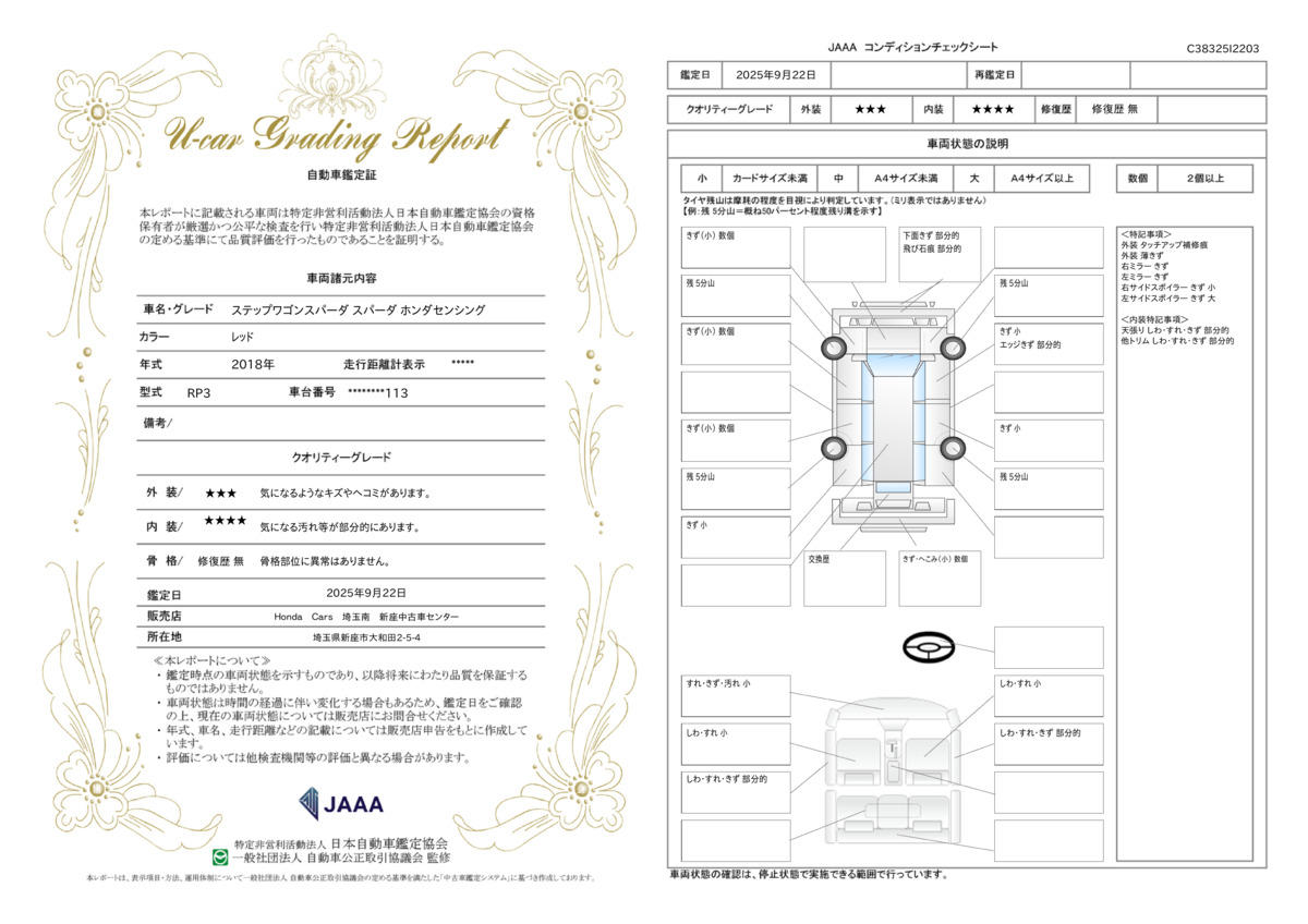 車両保証(ステップワゴンスパーダ スパーダ ホンダセンシング:Honda Cars 埼玉南 新座中古車センター)