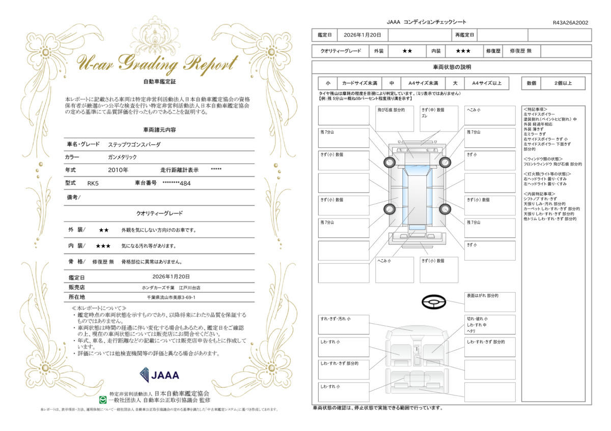 | 車両状態評価書 | ※クリックすると開きます![]() |