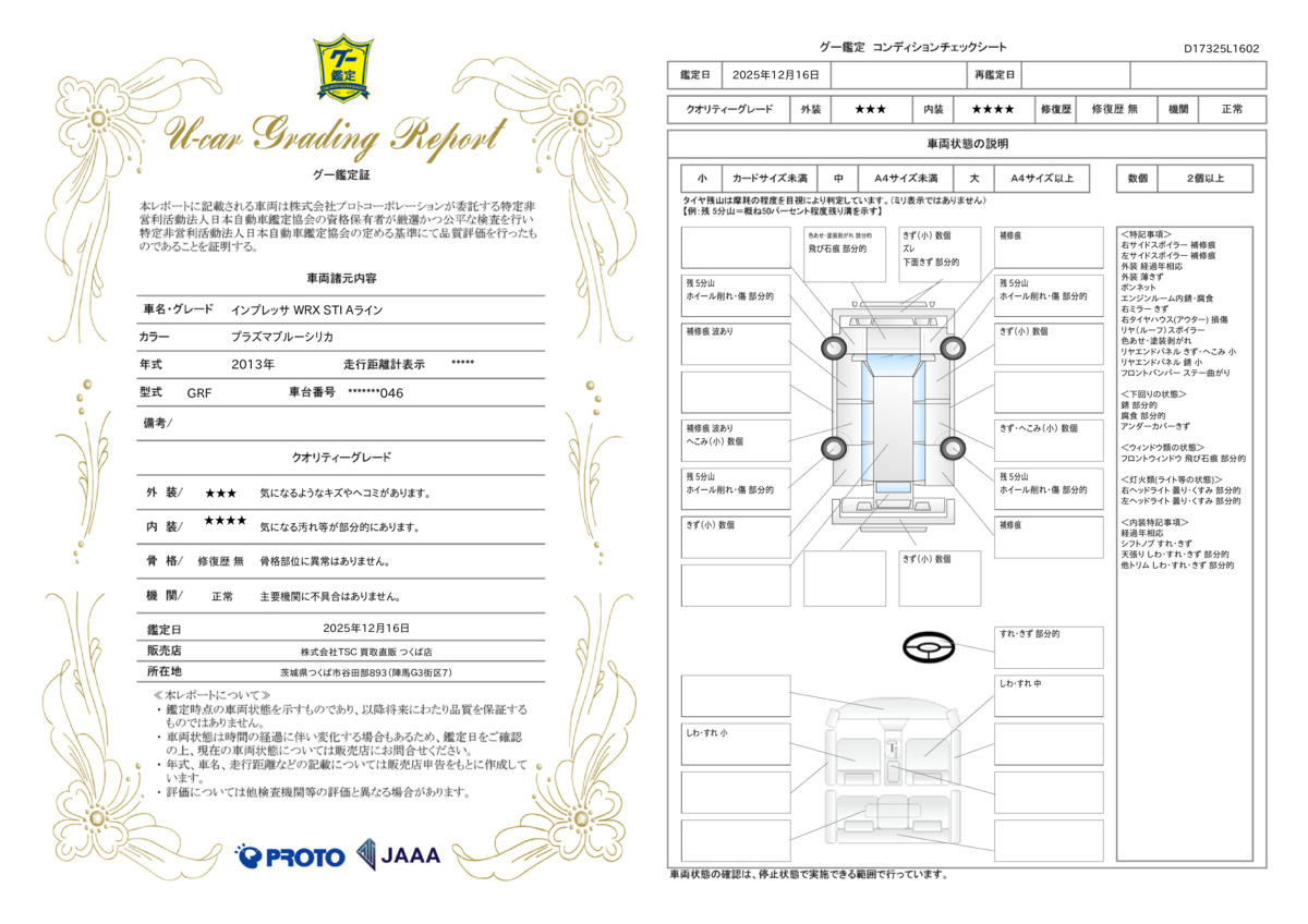 車両保証(インプレッサ WRX STI Aライン:(株)TSC 買取直販 つくば店)