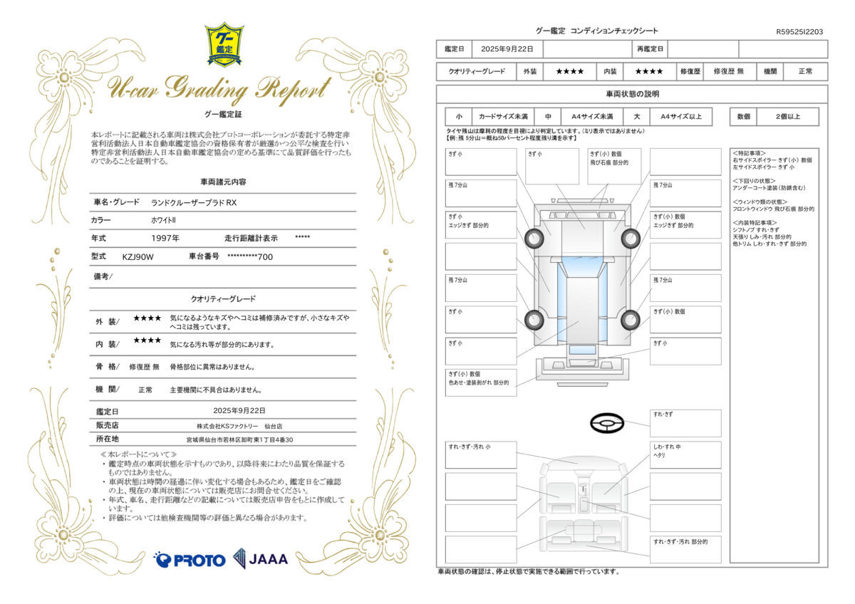 車両状態評価書 | ※クリックすると開きます![]() |