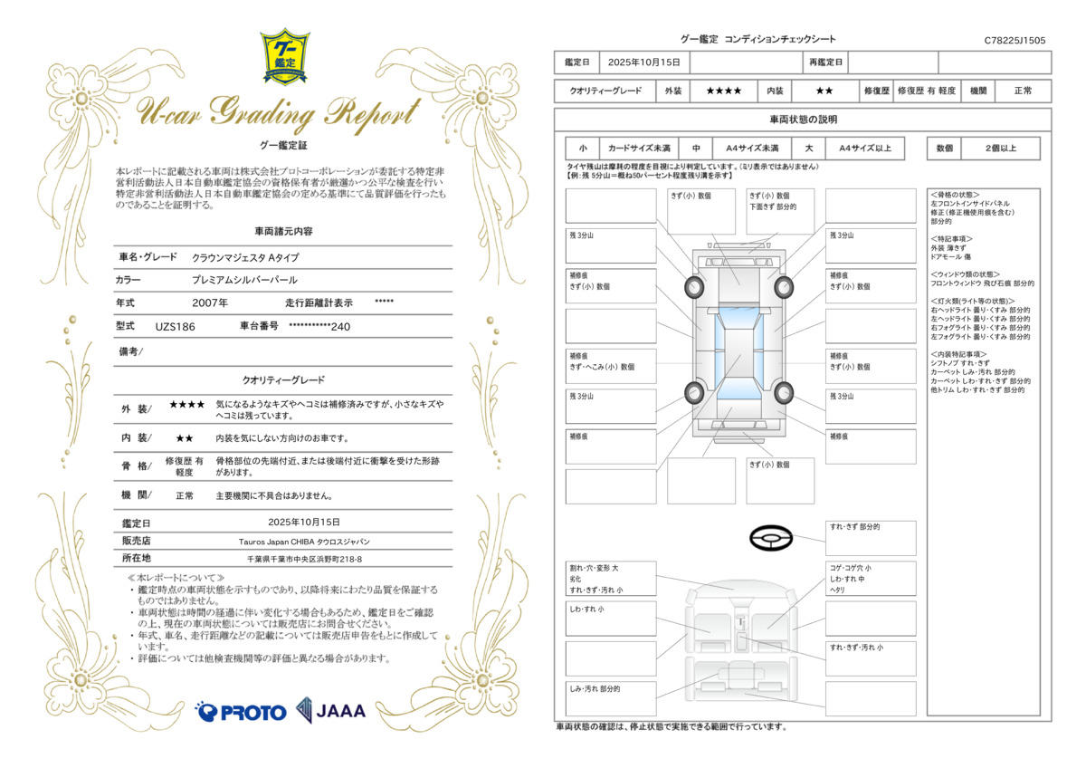 車両保証(クラウンマジェスタ Aタイプ:Tauros Japan CHIBA タウロスジャパン千葉)