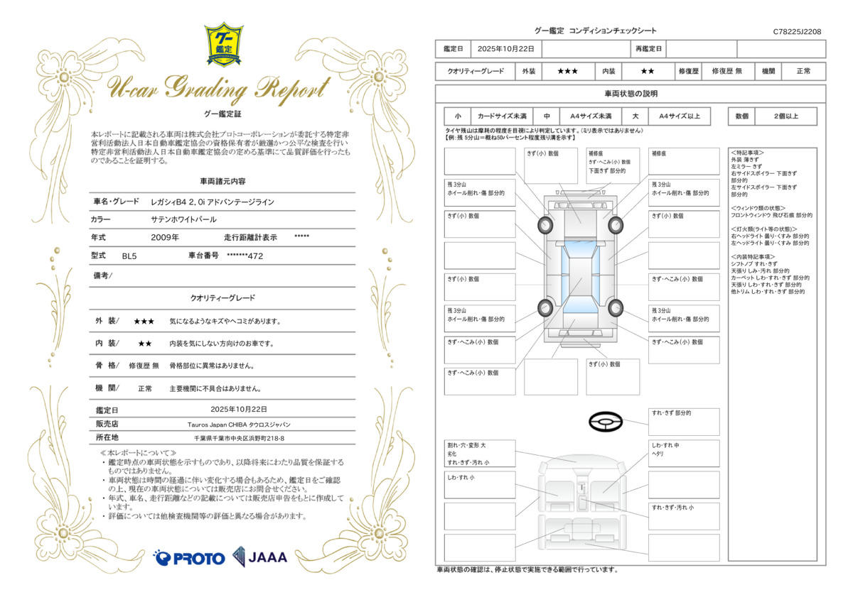 車両保証(レガシィB4 2.0i アドバンテージライン:Tauros Japan CHIBA タウロスジャパン千葉)
