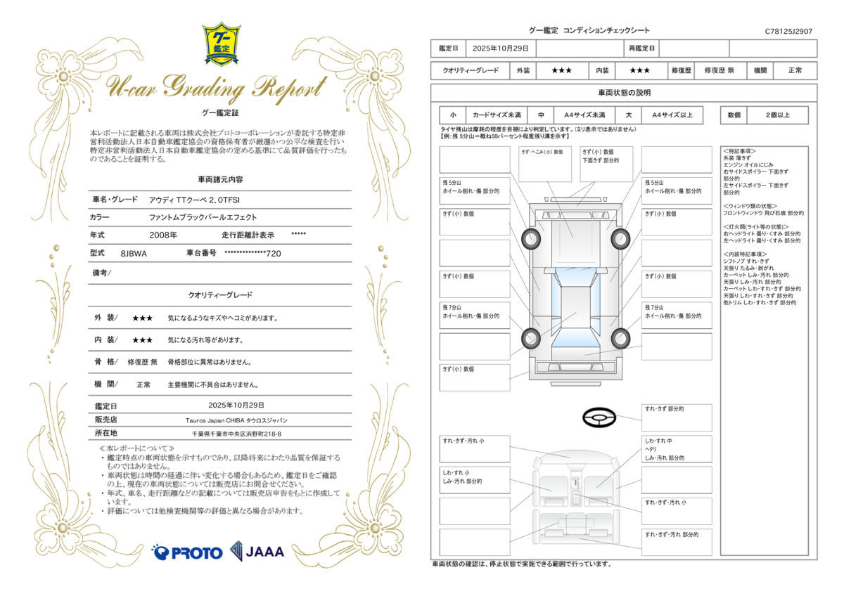 車両保証(TTクーペ 2.0TFSI:Tauros Japan CHIBA タウロスジャパン千葉)