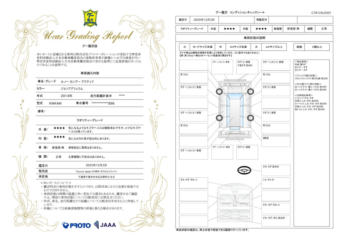 | 車両状態評価書 | ※クリックすると開きます![]() |