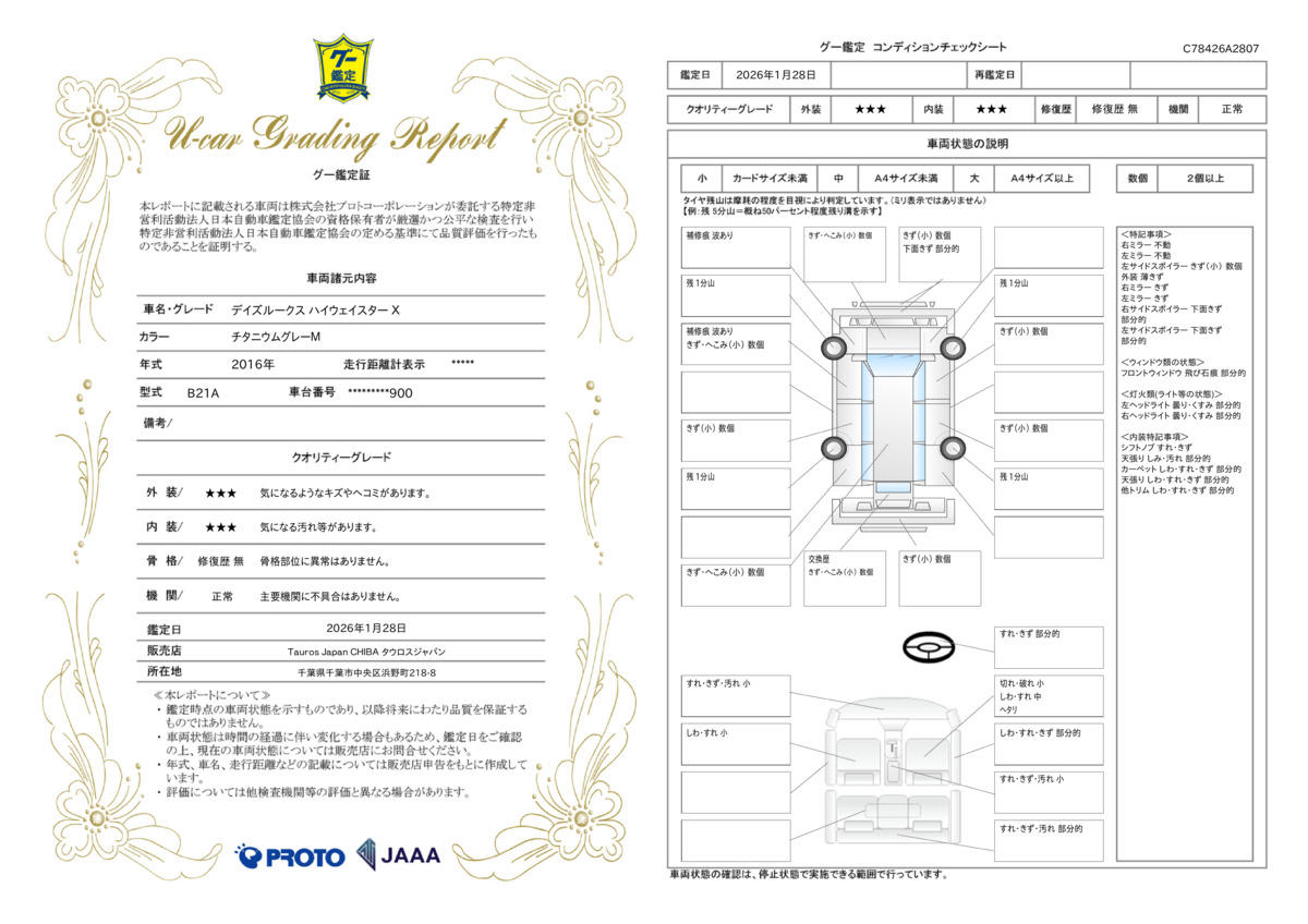 | 車両状態評価書 | ※クリックすると開きます![]() |