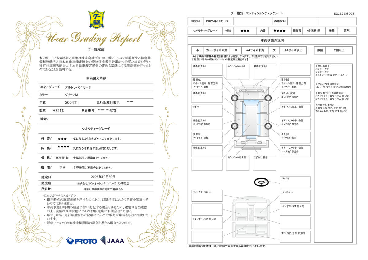 | 車両状態評価書 | ※クリックすると開きます![]() |