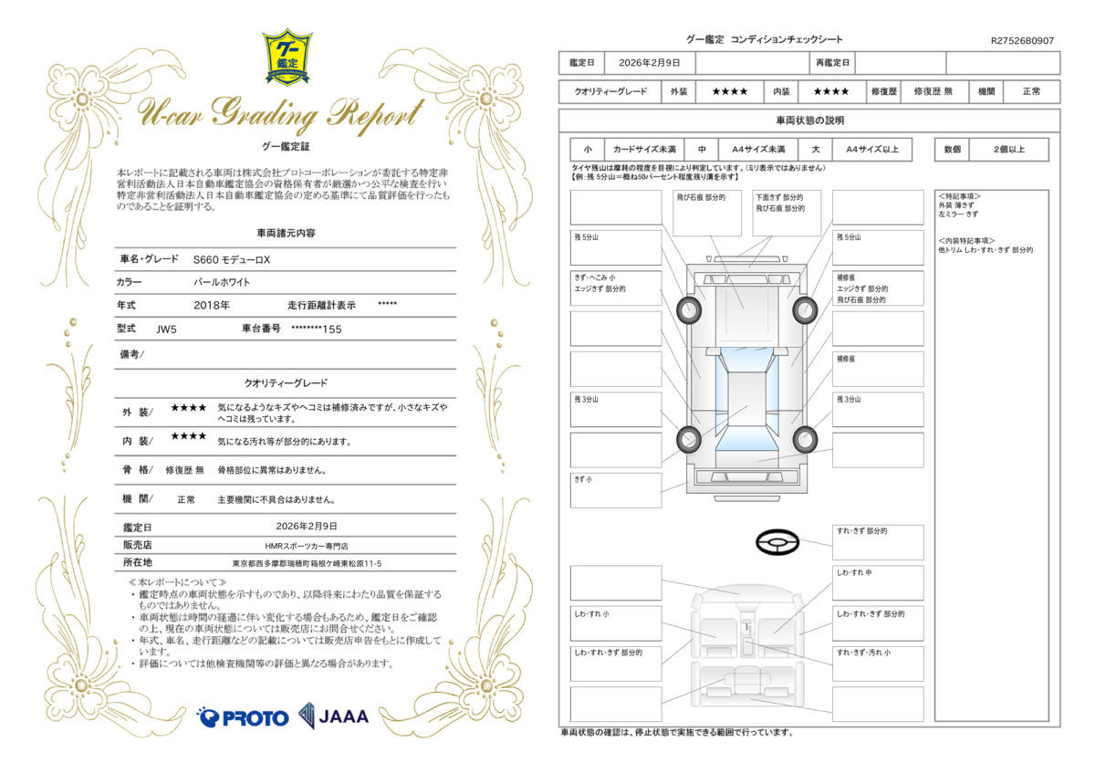 | 車両状態評価書 | ※クリックすると開きます![]() |