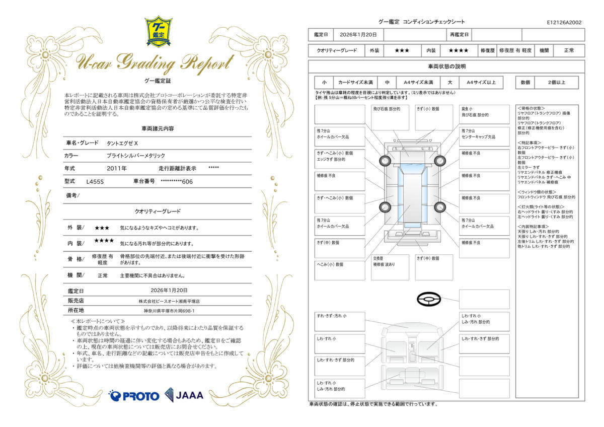 | 車両状態評価書 | ※クリックすると開きます![]() |