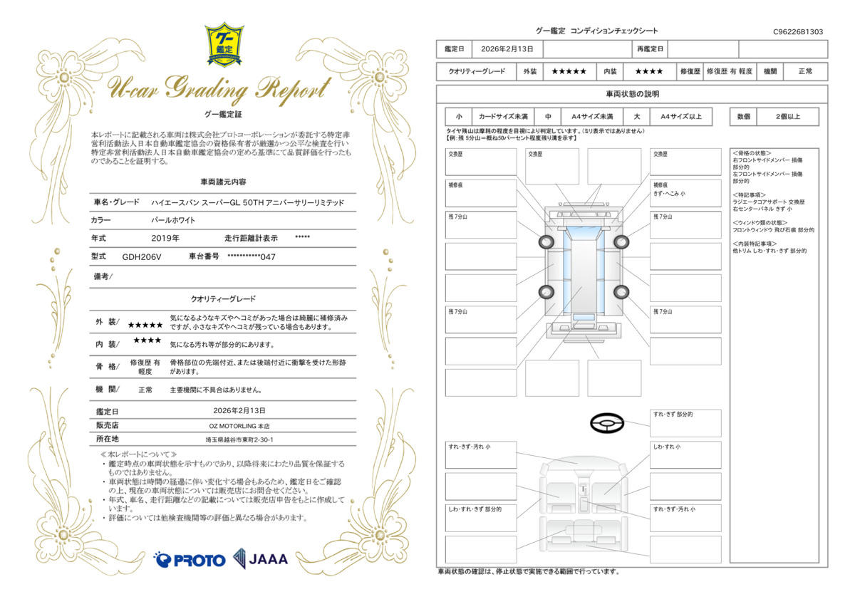 車両保証(ハイエースバン スーパーGL 50TH アニバーサリーリミテッド:OZ MOTORLING レイクタウン本店 JU適正販売店)