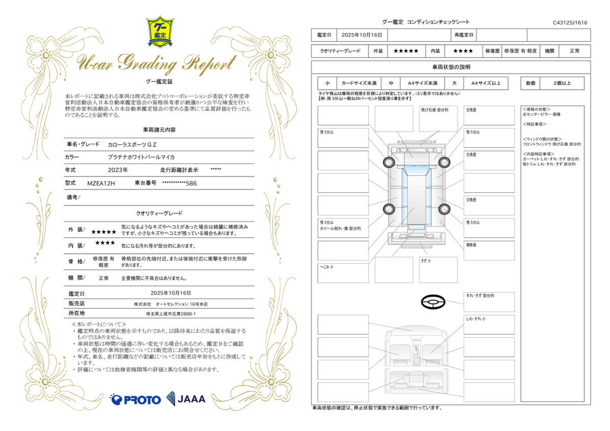 | 車両状態評価書 | ※クリックすると開きます![]() |