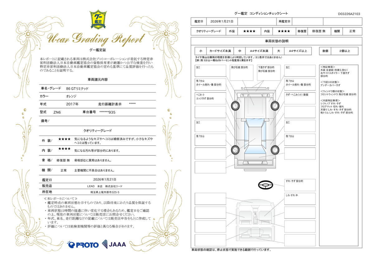 車両保証(86 GTリミテッド:LEAD 本店 株式会社リード)