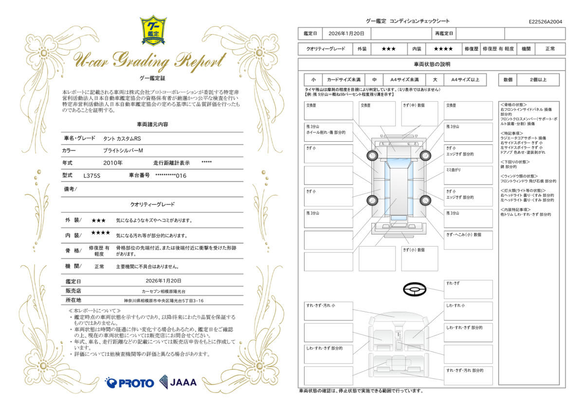 | 車両状態評価書 | ※クリックすると開きます![]() |