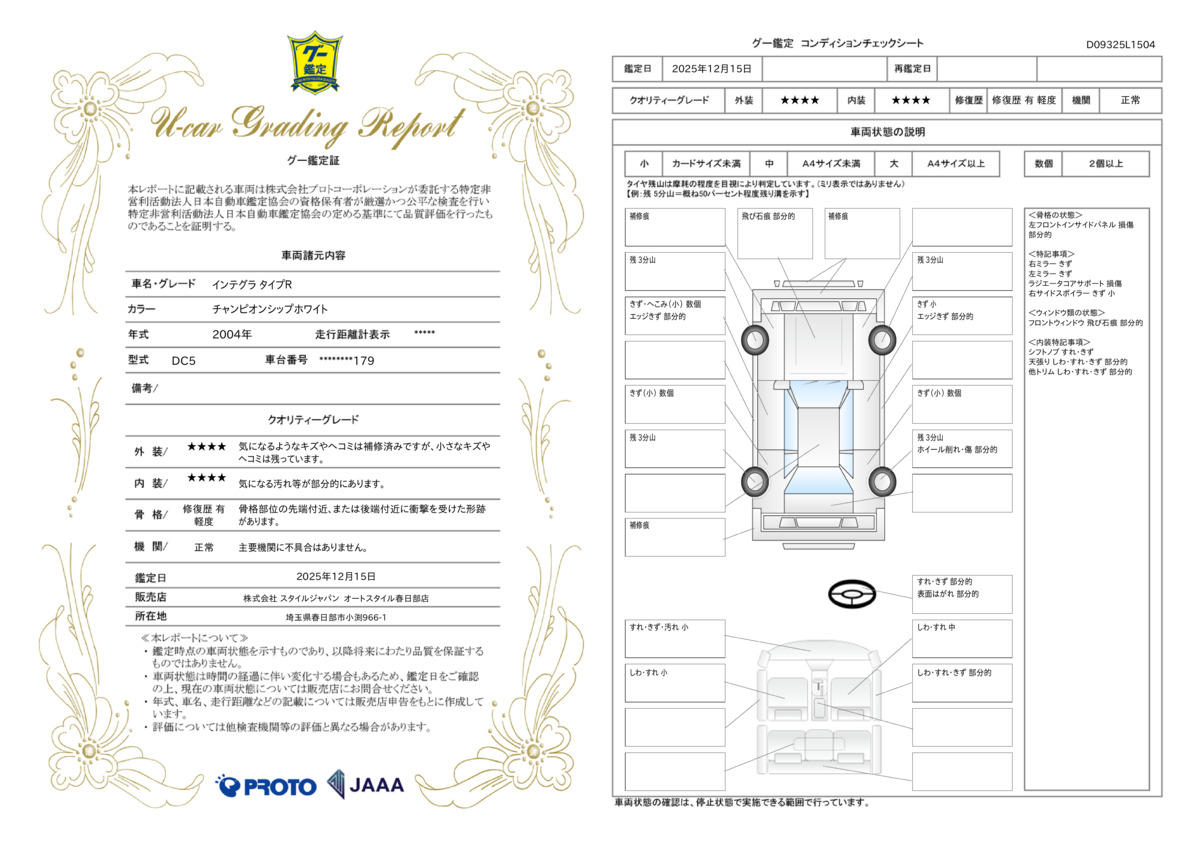 車両保証(インテグラ タイプR:株式会社スタイルジャパン オートスタイル春日部店)