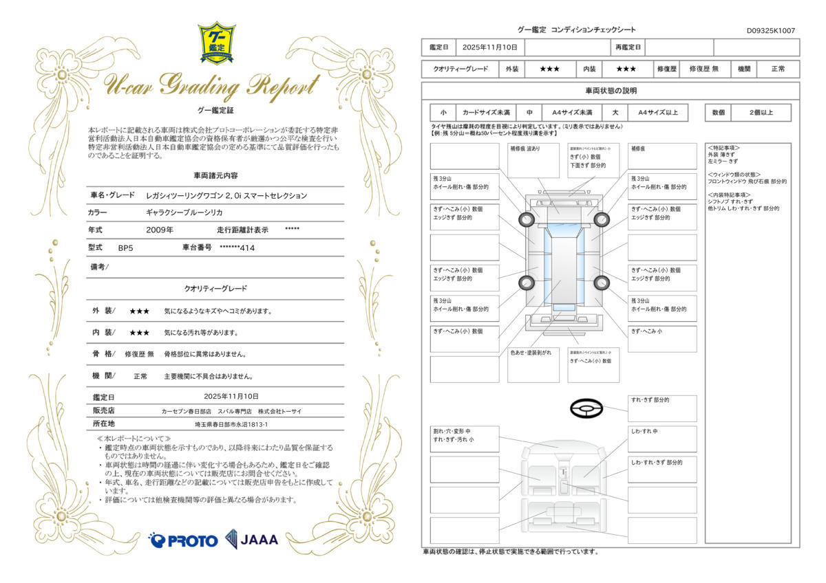 | 車両状態評価書 | ※クリックすると開きます![]() |