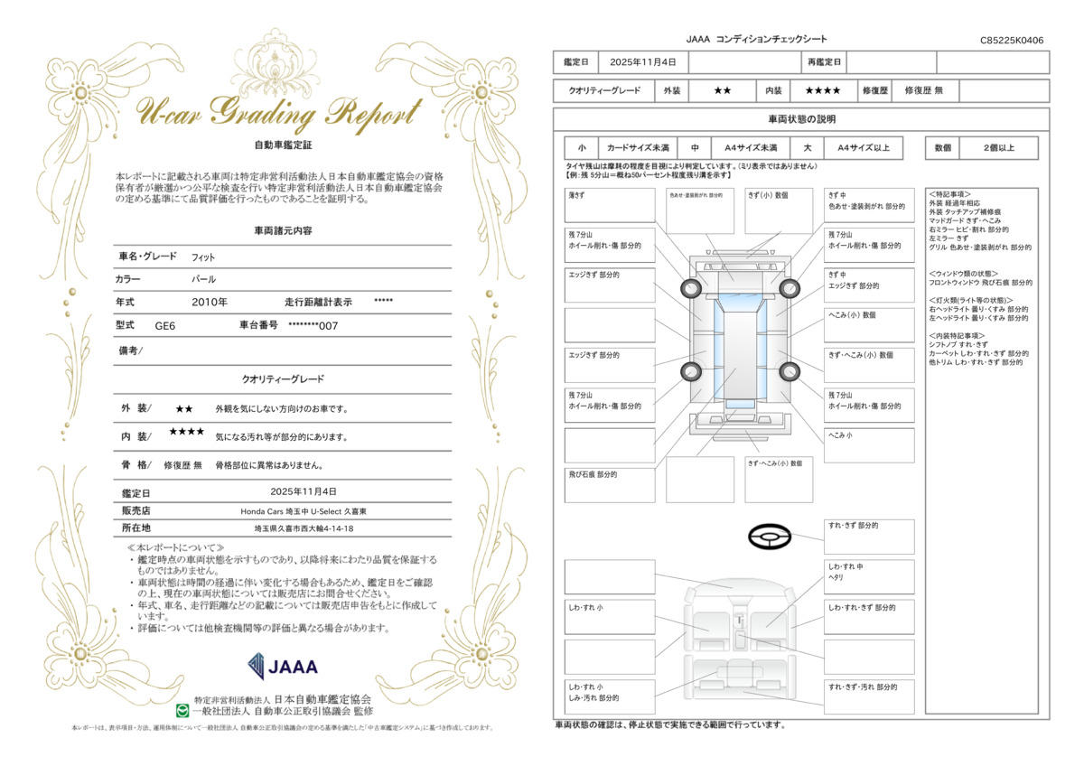 | 車両状態評価書 | ※クリックすると開きます![]() |