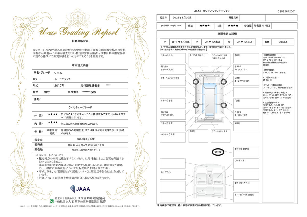 | 車両状態評価書 | ※クリックすると開きます![]() |