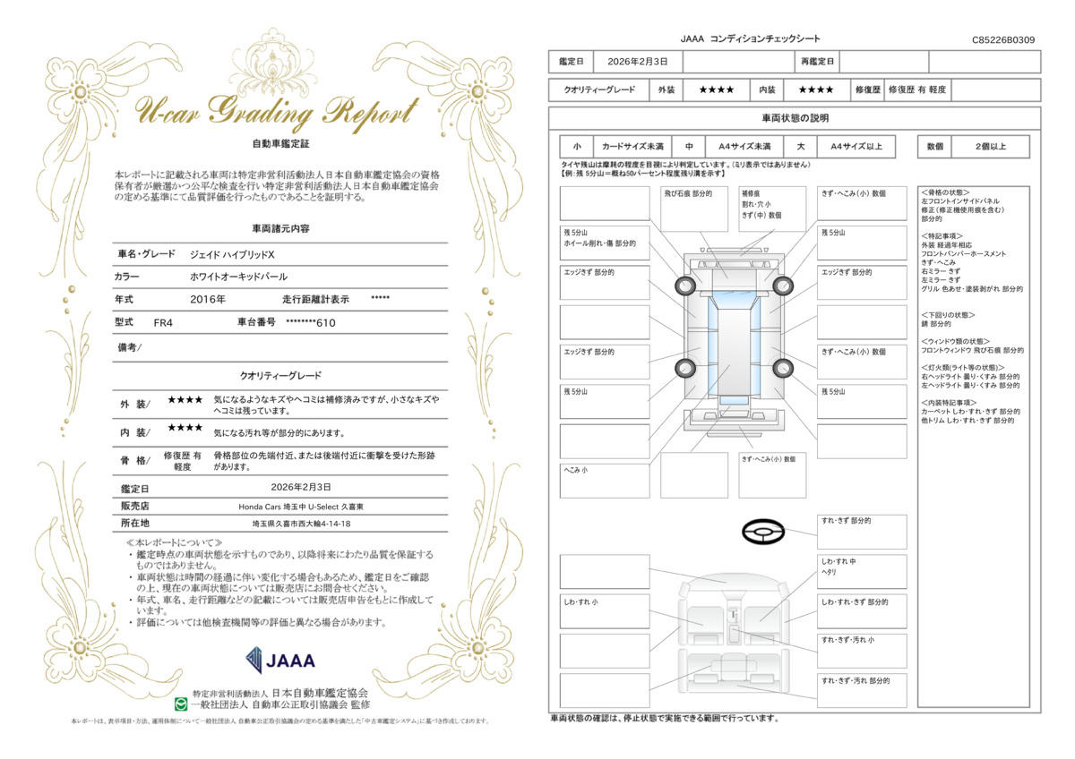 | 車両状態評価書 | ※クリックすると開きます![]() |
