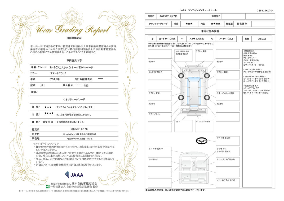 車両状態(N-BOXカスタム G ターボSSパッケージ)