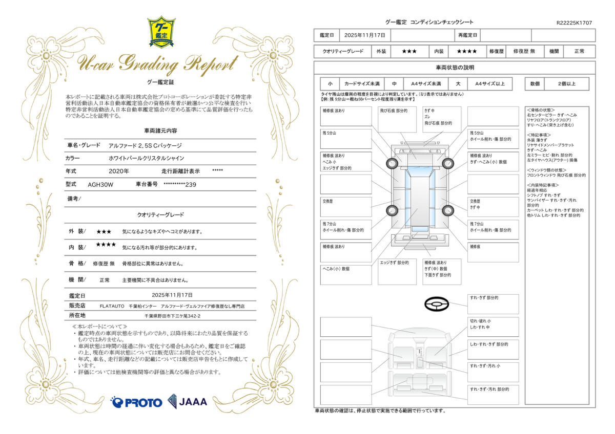 車両保証(アルファード 2.5S Cパッケージ:FLATAUTO 千葉柏インター トヨタ アルファード・ヴェルファイア修復歴なし専門店)