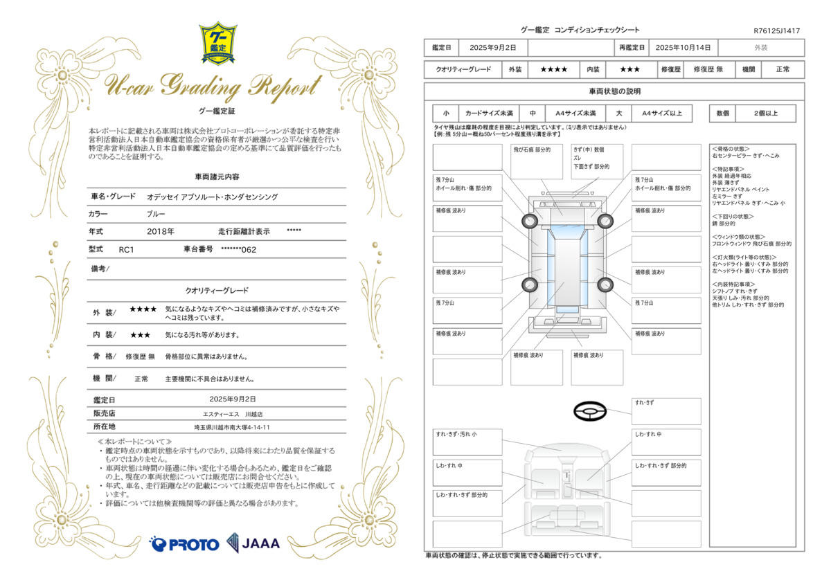 車両状態評価書 | ※クリックすると開きます![]() |