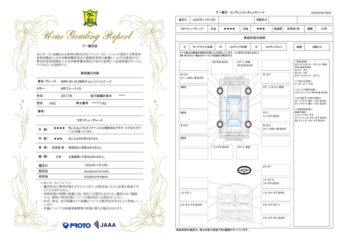 車両保証(WRX S4 tS NBRチャレンジパッケージ:株式会社AR MOTORS)