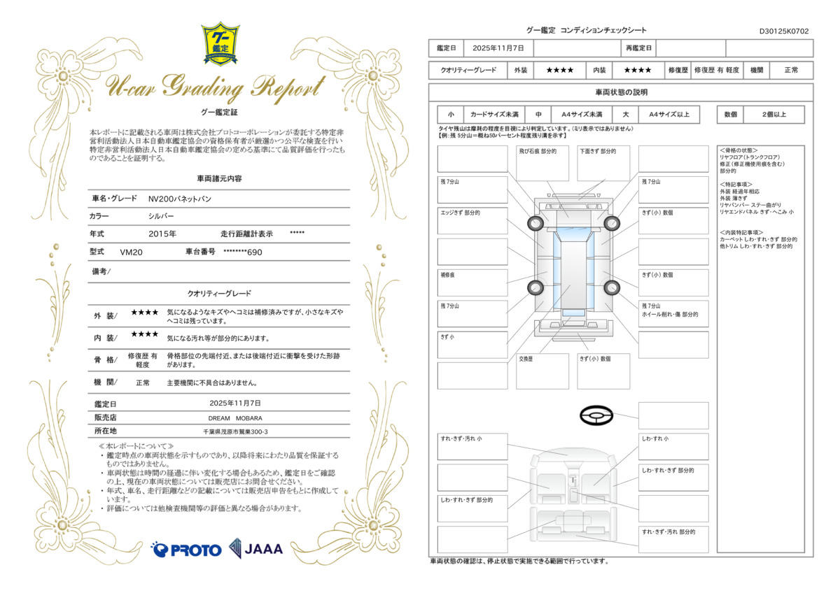 | 車両状態評価書 | ※クリックすると開きます![]() |